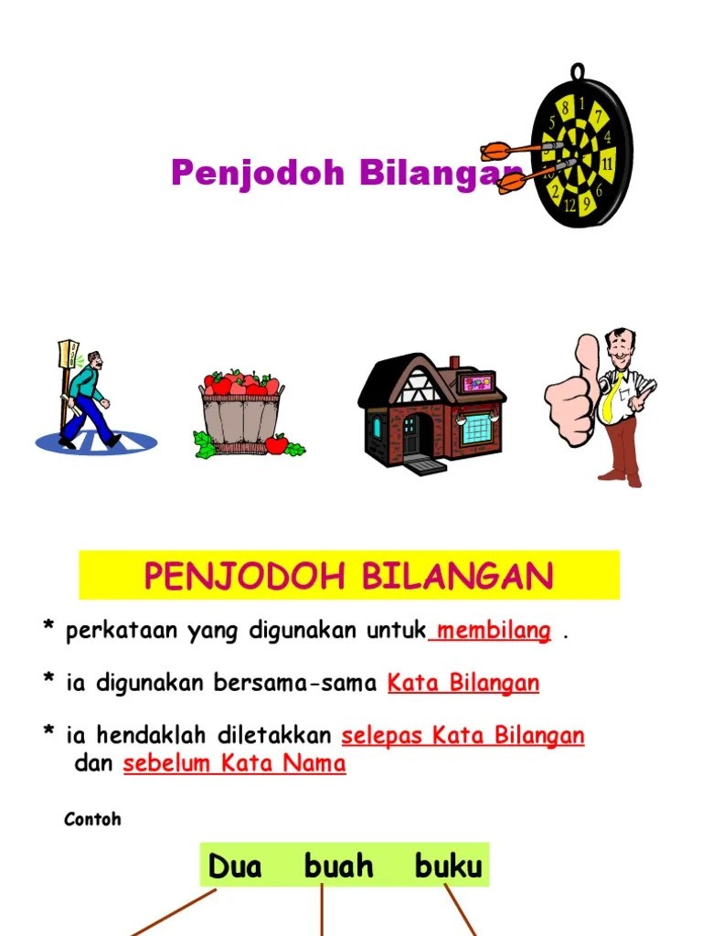 Penjodoh bilangan dan penggunaan contoh ayat.